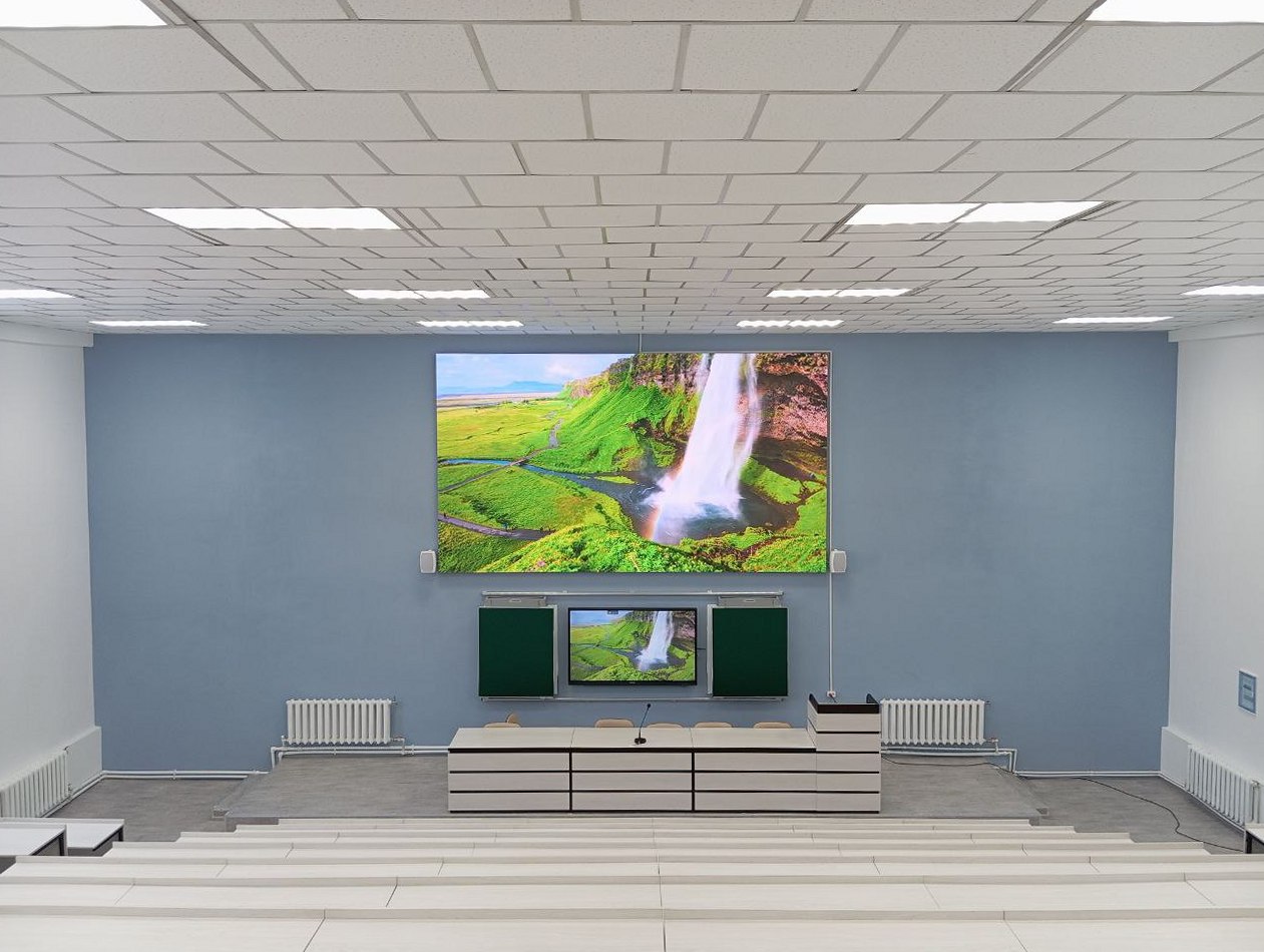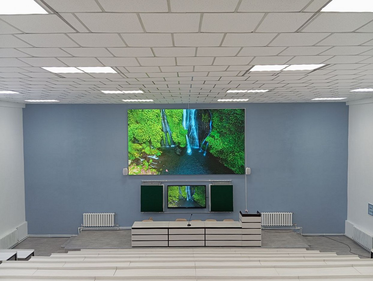 В рамках создания высокотехнологичного образовательного пространства две лекционные аудитории были оснащены современными мультимедийными комплексами аудио и видео трансляции. Аудитории предназначены для проведения лекций, семинаров, презентаций, научных и общественных мероприятий.