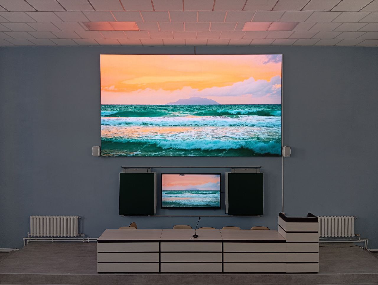 Главным преимуществом мультимедийного комплекса является мгновенная синхронизация с основным экраном. Все действия преподавателя, включая рукописные заметки, выделения и правки, в реальном времени отображаются на большом LED-экране, обеспечивая идеальную видимость для всей аудитории.